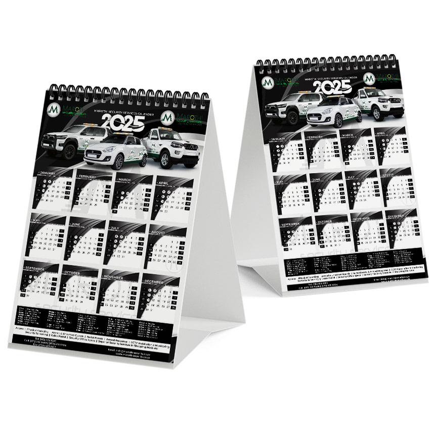 Large-format calendars with custom branding or designs. Compact calendars for desk use with branding. Planner templates for scheduling and goal tracking.